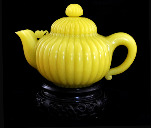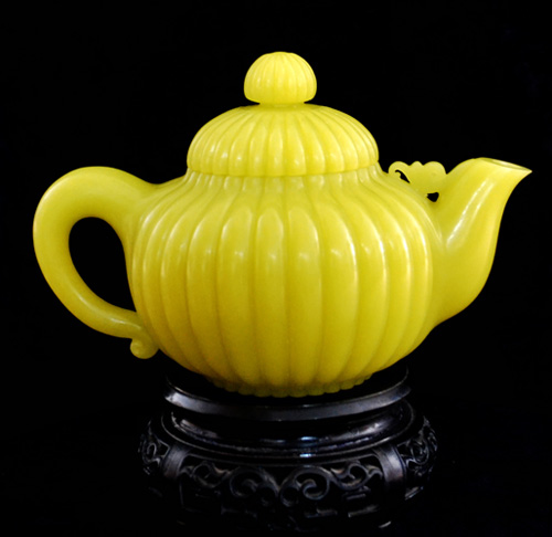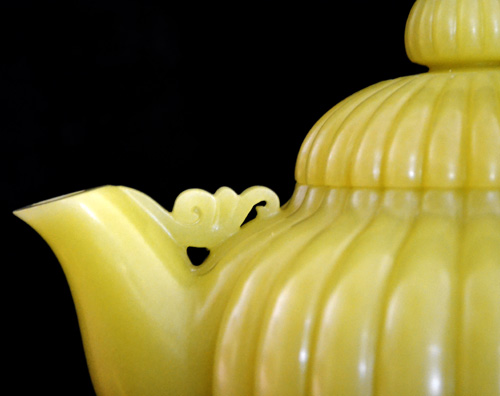 所谓“素活”,指仿制秦汉以前的炉、瓶、鼎、薰等宫廷中的古器物。它的制作讲究平衡、稳重、比例匀称、圆润光滑,文饰讲究古朴、典雅、华贵,其工艺难度是非常大的。而本作品采用不多见的黄玉,玉质细腻温和,色泽通一不杂,此种品级的玉料更是少之又少。作品以是传统的瓜棱壶为创作题材,造型款整优美,线条简洁流畅,优雅而不失格调,整体稳重而端庄,简约唯美。超凡的工艺水准,传达独有的静雅之美,给人留下深刻的印象。与工与料与韵都不失为一件集实用、把玩、观赏、收藏为一体的佳品。