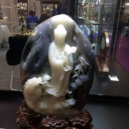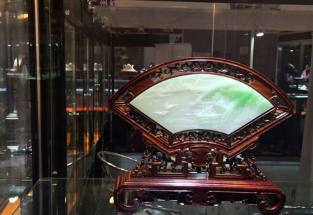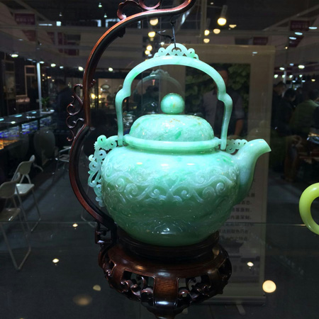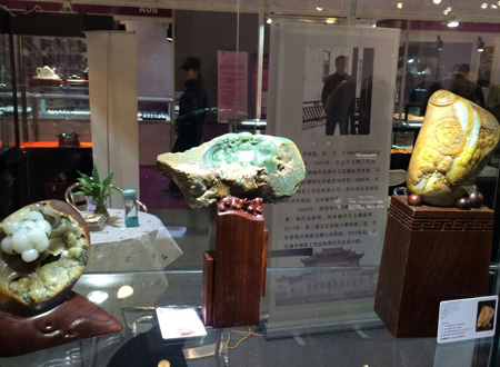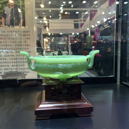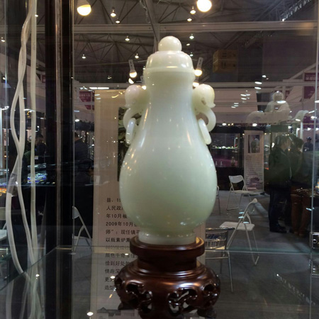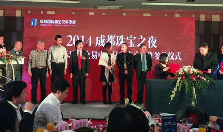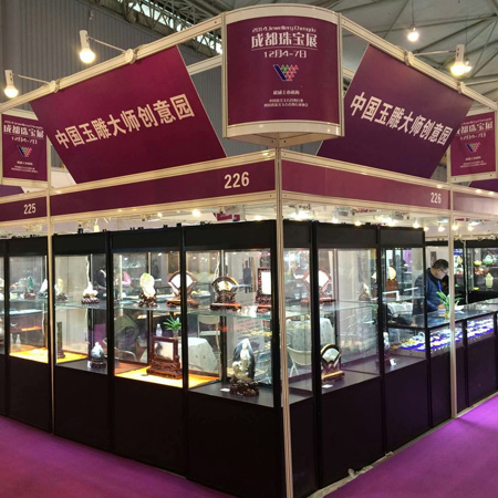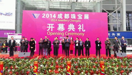 备受业界瞩目, 由中国珠宝玉石首饰行业协会和四川省珠宝玉石首饰行业协会联合主办的“2014成都珠宝展”于12月4日上午在成都世纪城新国际会展中心隆重开幕。 中国珠宝玉石首饰行业协会会长徐德明先生、中宝协常务副会长秘书长孙凤民先生、成都市博览局会展服务处处长钟谦先生、中宝协副会长杨似三先生、中宝协副会长史洪岳先生、中宝协副会长深圳市黄金珠宝首饰行业协会会长杨绍武先生、四川省珠宝玉石首饰行业协会副会长李国贵先生、四川省珠宝玉石首饰产品质量监督检验中心主任戴苏兰女士、中宝协副会长福建省宝玉石协会秘书长王乃珠先生、台湾参展团团长邱惟钟先生、香港参展团团长/香港珠宝制造业厂商会主席刘家健先生出席了本次开幕仪式。 我公司董事长、中国珠宝玉石首饰行业协会副会长李杰先生也应邀带领中国玉雕大师创意园入驻的三家企业、五位大师参加了本次开幕仪式。现在小编将参会照片发布,与大家分享。此次参展作品除却大师获奖作品之外,还有众多小精品,挂件、摆件、把件、手镯、金镶玉等品种,品种之全、种类之多,值得关注。如有意向,敬请关注,敬请光临。中国玉雕大师创意园、五位大师以及三家龙头企业在这里等您。