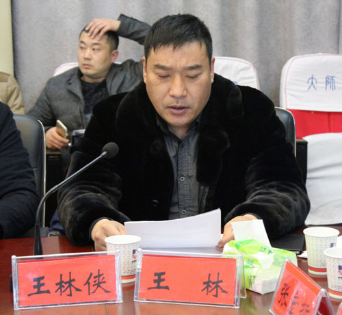 县宝协常务副会长王林侠宣读《镇平县宝玉石协会第五届理事会第四次会议建议增补理事、常务理事名单》