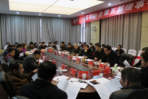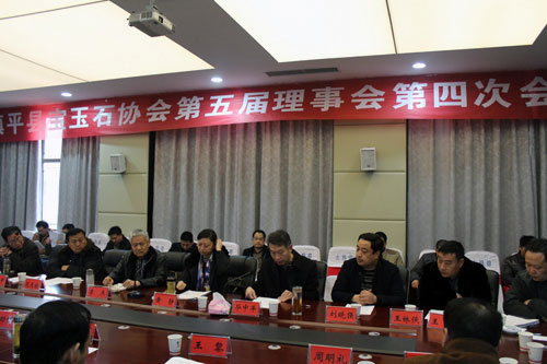 2015年1月25日,镇平县宝玉石协会第五届理事会第四次会议在我公司二楼会议室顺利召开,镇平县委常委、组织部部长黄静,县政府党组成员毕中平,协会会长李杰,常务副会长王林、范天栓、王林侠,秘书长刘晓强等60余人参加了会议。
