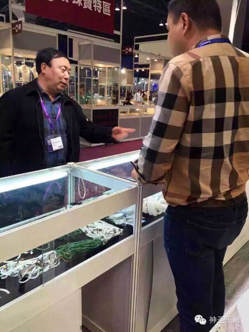 中国珠宝玉石首饰行业协会常务副会长孙凤民先生莅临展会并与神圣工艺总经理李松盈交谈